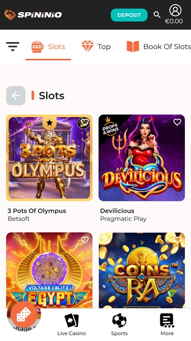 As the brand’s name suggests, Spininio is an online casino that puts a primary focus on offering players a robust set of real money slots to play through, and if you’re a fan of the genre, there will be thousands of exciting choices. If you’re not sure where to start, try playing some of these popular slots: