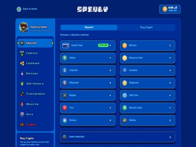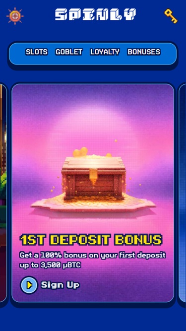The casino includes the Goblet which is Spinly's reward hub that allows players to collect Satoshis and extra spins. It automatically refills rewards, including Satoshis every twenty minutes and bonus spins every forty-five minutes, regardless of if you're playing or not.