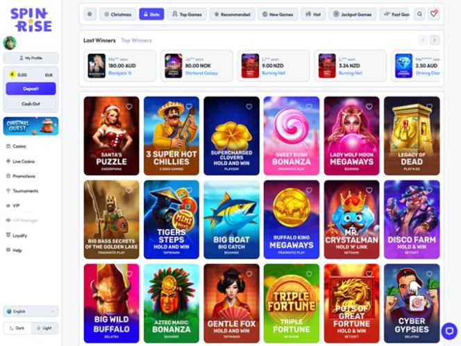 Spinrise Casino is an online casino operated by an experienced company registered under the laws of Curacao. It is licensed and regulated by the Curacao Gaming Control Board and oriented toward players coming from Canada, Germany, Ireland, Austria, and Switzerland.