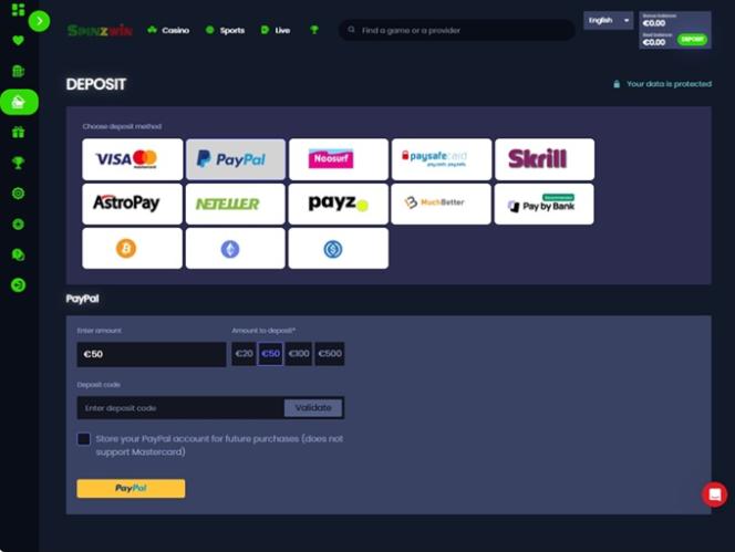 Spinzwin is responsive and optimized to automatically adjust its contents to all available devices, desktop and mobile. This means that no matter the device screen size, punters will be able to fully experience this online casino’s gaming atmosphere and enjoy all casino features.