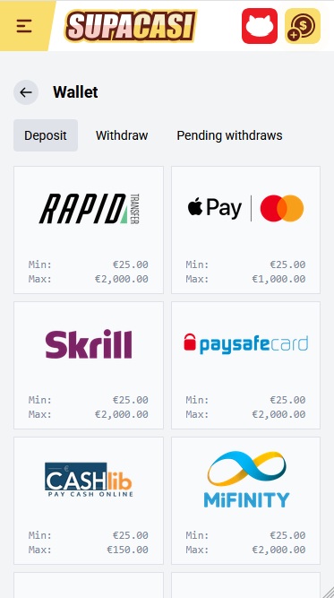 The operator collaborates with many iGaming industry leaders that provide online casino contents for decades now, but with young studios as well (Mancala Gaming, Caleta, KA Gaming …). This allows Supacasi to offer only the best to its players.
