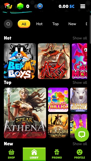 Now, if you’ve been looking for a sweepstakes casino that can offer more traditional games and table classics such as roulette, blackjack, baccarat, and poker, you won’t have any options here, unfortunately. Similar to live dealers, there aren’t any options for players here.