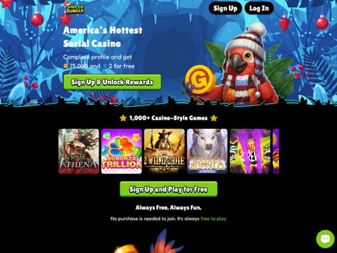Sweep Jungle is a well-rounded social casino that welcomes players from the United States (with certain states restricted as outlined in the terms and conditions) and aims to deliver an amazing experience by offering a robust lineup of casino-style online slots and a ton of exciting promotions, events, and bonuses. Players can enjoy everything the brand has to offer without a purchase necessary.