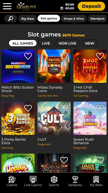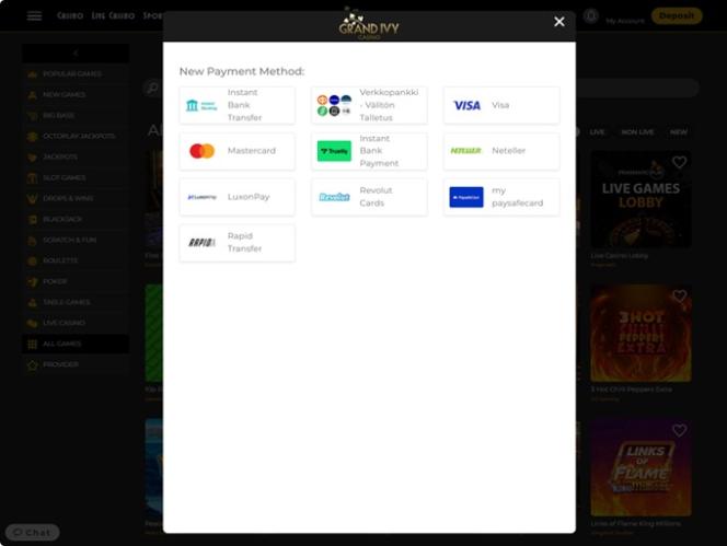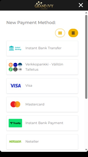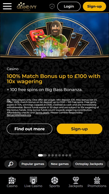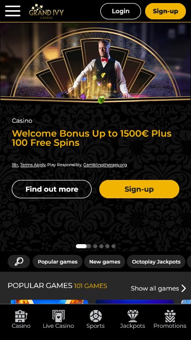 The Grand Ivy Casino is powered by Microgaming, Net Entertainment, 1x2gaming, Barcrest, Big Time Gaming, ELK Studios, Evolution Gaming, EYECON, Ezugi, lightningboxgames, Play'n GO, Rabcat, Relax Gaming, Thunderkick, Wazdan, Realistic Games, Stakelogic, Pragmatic Play, Nolimit City, Red Tiger Gaming, IGT, Air Dice, Spinomenal, Red Rake Gaming, Fantasma Games, FunFair, SYNOT Games, Kalamba, Revolver Gaming, Skywind, Spinmatic, Triple Edge Studios, BGAMING, Northern Lights Gaming, Stormcraft Studios, Switch Studios, Electric Elephant Games, Pocket Games Soft, All41 Studios, Gluck Games, Gameburger Studios, Neon Valley Studios, Golden Rock Studios, Swintt, Shuffle Master, SpinPlay Games, HungryBear Gaming, KA Gaming, GONG Gaming, Blue Guru Games, On Air Entertainment, Buck Stakes Entertainment, Games Global, Bally Technologies, Blueprint Gaming, Endemol Games, Greentube, Leander Games, Merkur Gaming, NextGen, NYX Interactive, Push Gaming, WMS, Inspired Gaming, Gaming Realms, SG Interactive, Red7Mobile, CORE Gaming, Scientific Games, Side City Studios, Reel Time Gaming, Iron Dog Studio, Foxium, Betdigital, Just For The Win, Storm Gaming Technology, PearFiction Studios, Apollo Games, Wild Streak Gaming, Slingshot Studios, Fortune Factory Studios, Jade Rabbit Gaming, RubyPlay, 4ThePlayer, AvatarUX, Gamevy, Crazy Tooth Studio, NetGaming, ReelPlay, AGS Interactive, Alchemy Gaming, Black Pudding Games, Snowborn Games, Boomerang Studios, Hacksaw Gaming, Max Win Gaming, Gold Coin Studios, Bang Bang Games, Half Pixel Studios, Slotmill, Peter And Sons, Aurum Signature Studios, Lucksome Gaming, Area Vegas, RAW iGaming, Wishbone Games, Spribe, Print Studios, Gaming Corps, HammerTime Games, Four Leaf Gaming, INO Games, Nailed It! Games, Live 5, Neko Games, Reel Kingdom, Oros Gaming, Light & Wonder and Octoplay, and the casino’s games are offered using a web-based instant play platform that allows punters the ability to register, bank, and play all through their web browser. There is also an extensive mobile site offered, which gives players the chance to play games with their smartphones and tablets.