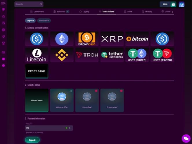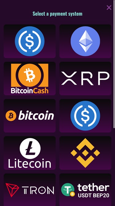 Payment methods don’t look too shabby, especially if you are a crypto enthusiast. Bitcoin, Ripple, Ethereum and Tron are just some of the available coins!