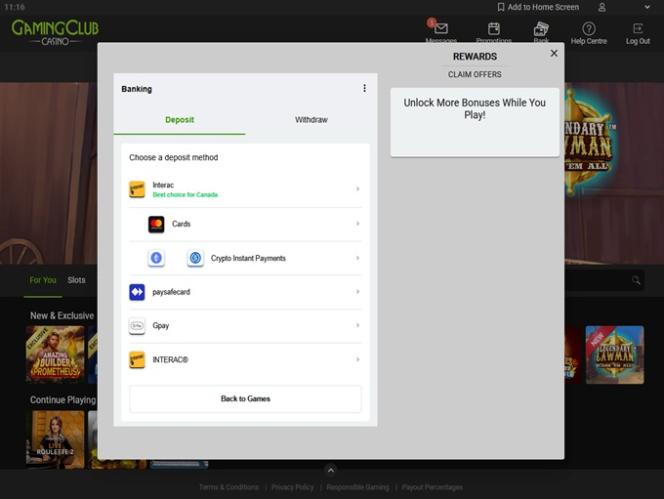 Gaming Club Casino is powered by Microgaming, Net Entertainment, Evolution Gaming, Ezugi, Rabcat, Pragmatic Play, Red Tiger Gaming, Triple Edge Studios, Northern Lights Gaming, Stormcraft Studios, Switch Studios, Electric Elephant Games, All41 Studios, Gameburger Studios, Pulse 8 Studios, Neon Valley Studios, SpinPlay Games, Real Dealer Studios, GONG Gaming, On Air Entertainment, Buck Stakes Entertainment, Games Global, Old Skool Studios, Foxium, Just For The Win, PearFiction Studios, Slingshot Studios, Fortune Factory Studios, Crazy Tooth Studio, Alchemy Gaming, Snowborn Games, Gold Coin Studios, Half Pixel Studios, Eurostar Studios and Aurum Signature Studios, which gives it a library of several hundred games. The casino is available through an instant-play platform on the site, which allows you to play directly through your web browser. A mobile site is also available, allowing play via a smartphone or tablet.