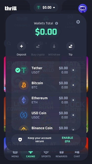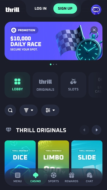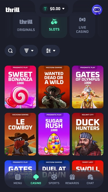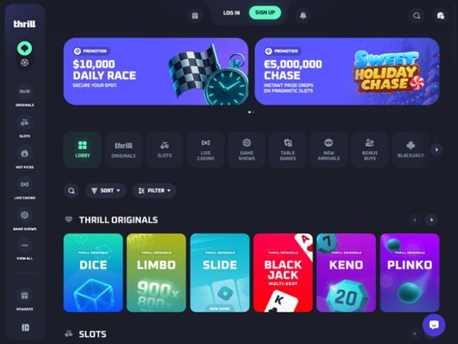 Besides Dice, Limbo, Blackjack, Keno, Plinko, Mines, and other original titles, Thrill also collaborates with some of the best online casino software developers out there, and gamblers can expect high-quality gambling content and game genre variety.