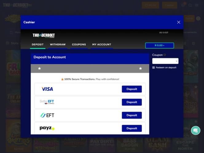 Thunderbolt casino, the cousin casino to Springbok casino but...so different from the legend of a casino. I like this slot. I have signed up with them a couple of years ago, but to date they have been consistend wit their games. A lot of new games jave surfaced, but it is new fresh and entertaining. The colors are vibrant and gives offf a feel good vibe when you play with them. The feel good vibe does count against you though, where you can see you are being ripped off, games not paying out but you keep playing. The fact that you can only withdraw a min of R250 is a pain, almost all the time so if you had any winnings...you are yet to kiss them good beuy before you reach R250