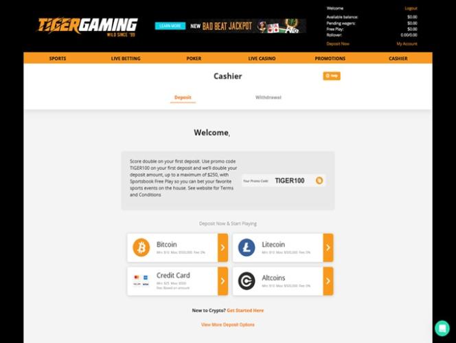 In addition to standard casino games, TigerGaming Casino also offers a full sportsbook, poker, and live dealer services to their customers.