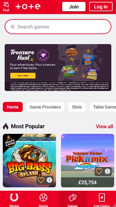 In addition to a traditional casino, Totesport offers its players a full sportsbook and lottery section.