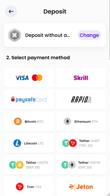 The operator offers the Pay and Play option which allows instant registration as soon as the players choose their preferred payment method and make a deposit.
