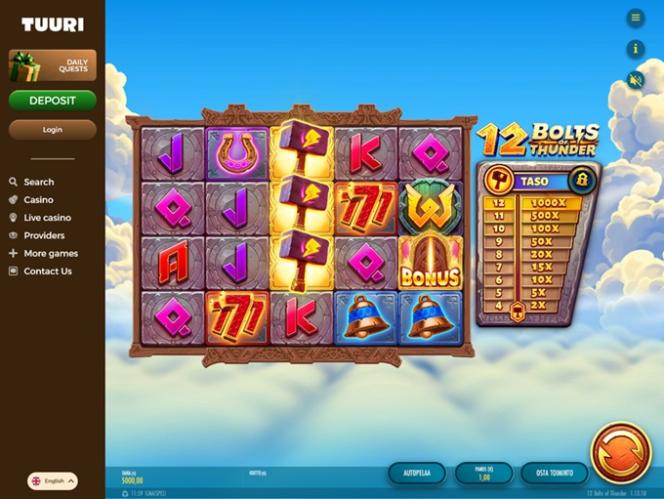 Tuurikasino is a modern online casino that has attracted a lot of attention from Finnish players, offering an impressive selection of games, including hundreds of online slots, live dealers, table games, and instant crash games. Players will also have access to several promotions, including rewarding bonuses, special VIP rewards, and daily challenges they can complete.