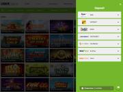 The welcome page is displaying a sign up box, with a brief description of the welcome bonus. Clicking on the top-right positioned home icon, will lead you to the casino’s main page. Uberlucky casino has a modern, minimalistic design with bright, vibrant green color. The layout is clean, navigation is easy and information is categorized well. This is how the games and the casino lobby became the absolute center of attention.