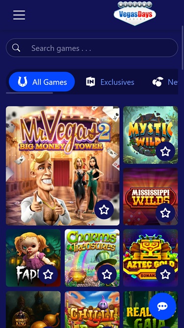 Vegas Days Casino is powered by BetSoft, Genesis Gaming, Rival, Saucify, Vivo Gaming, Spinomenal, Felix Gaming, Fugaso, Radi8 Games, Fresh Deck Studios, Woohoo Games, Qora Games, SmartSoft Gaming, Tom Horn Gaming, Genii, Wager Gaming, Dragon Gaming and Dragoon Soft, which allows punters the opportunity to play casino games through an instant play model as well as a downloadable piece of software.Other Games