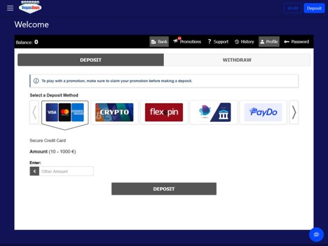 Vegas days is scam. They stole my money 3 times (together cca.300€) and after they lock out my account without reason.