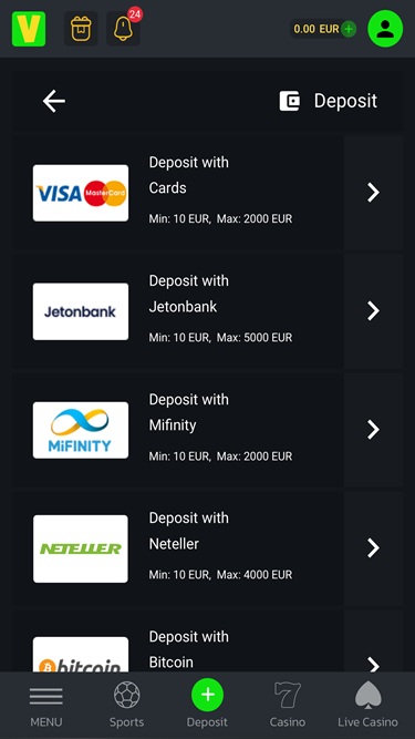 💸 Min Withdrawal€10 (Mifinity)/€20 (Other methods)