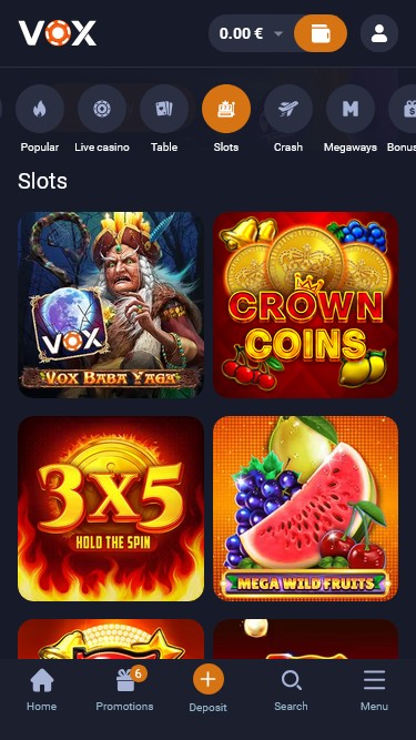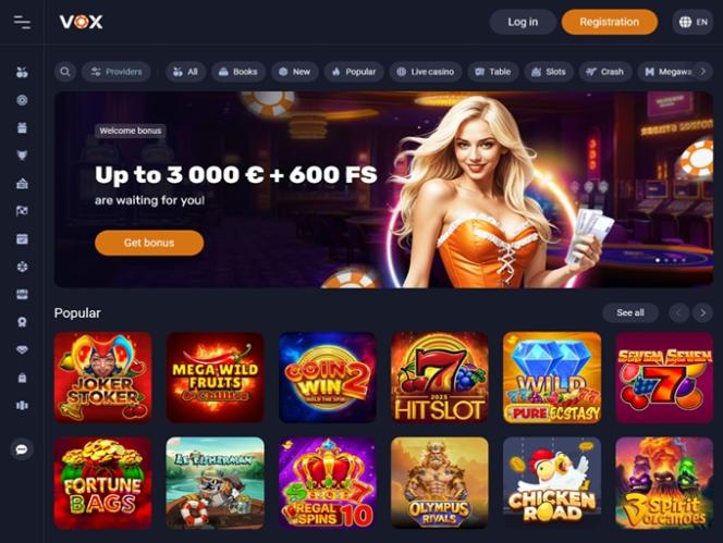 VOX Casino also hosts an entirely separate section dedicated to instant crash games, which are unique releases that focus on tight rules, quick rounds, and a potential for high payouts. There are a ton of great choices worth playing here, and these are just some of the available options: Plinko, Plinko Rush, JetX, CrashX, Space XY, Super Bingo, Bingo Mania, and Chicken Road.