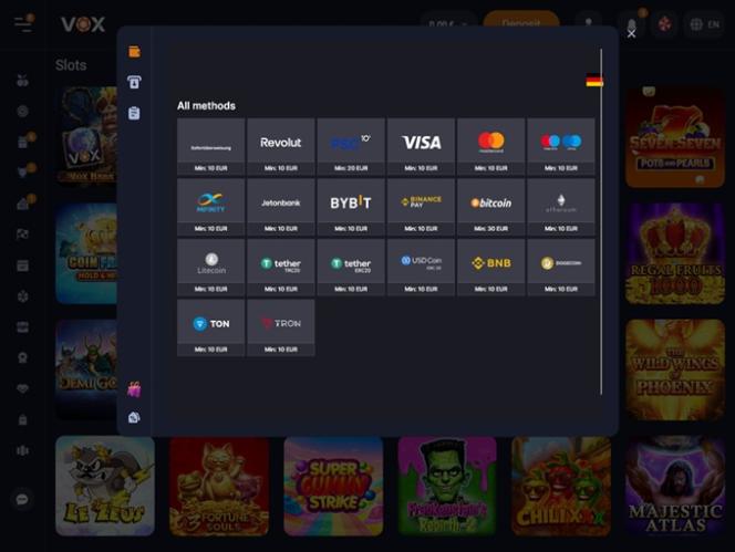 VOX Casino is a gambling site that made its debut with a bang, offering a robust selection of casino games, including live dealer games, online slots, crash games, and table games, along with a plethora of exciting promotions, bonuses, events, and tournaments. The brand welcomes players from Germany, Lithuania, Latvia, Portugal, and Sweden.