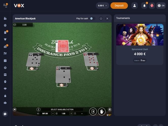 VOX Casino has not earned endorsement from the Wizard of Odds.