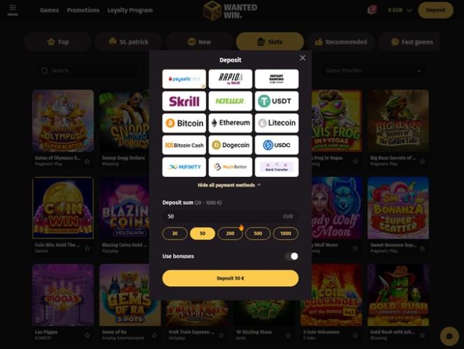 When it comes to WantedWin Casino, we can see that the operator dedicated plenty of resources to providing their customers with a great gaming experience, as playing there will allow you to browse over 100 different software developers. Legendary names like Pragmatic Play, Microgaming, Relax Gaming, Quickspin, and Nolimit City are present.