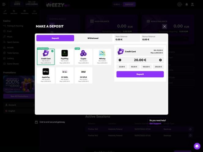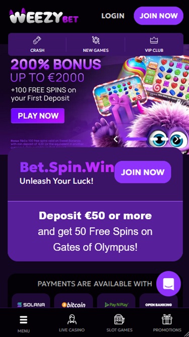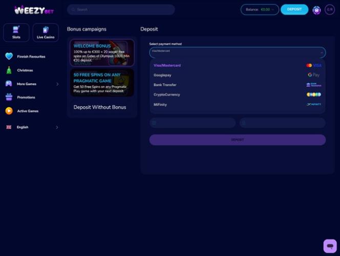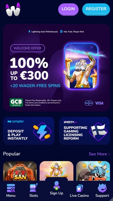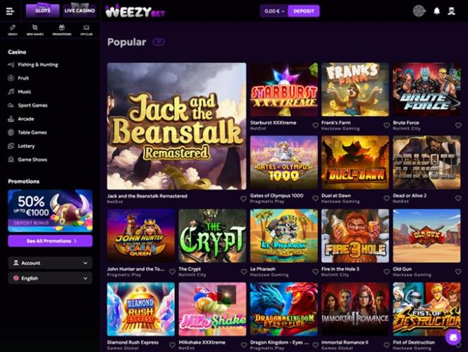 WeezyBet.com is a user-friendly online casino that can be accessed through personal computers as well as mobile devices. So, no matter if you prefer PC gambling or playing casino games on the go, you can count on fast loading times and a lovely interface on all available platforms.