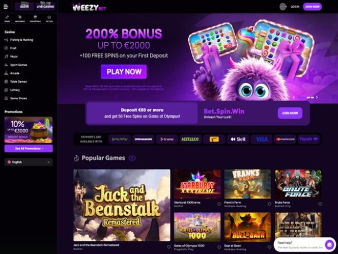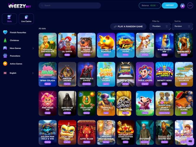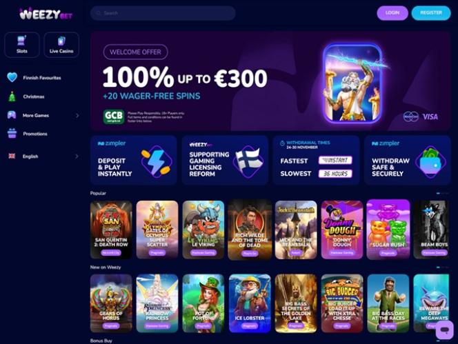 WeezyBet.com is an online casino regulated and licensed by the Government of the Autonomous Island of Anjouan, Union of Comoros. This operator has its focus on players based in Finland, Denmark, Germany, Netherlands, Italy, Greece and Canada. Still, even if you belong to some other gambling jurisdiction stay tuned as this brand looks super-inviting on first impression.