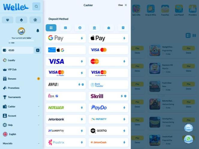 Welle is no different in that regard and players coming here will be able to conduct their payment operations using some of the more popular crypto currencies like Bitcoin, Bitcoin Cash, Cardan, Dogecoin, Ethereum, Litecoin, Ripple, Solana, Tether, Tron and USD Coin.