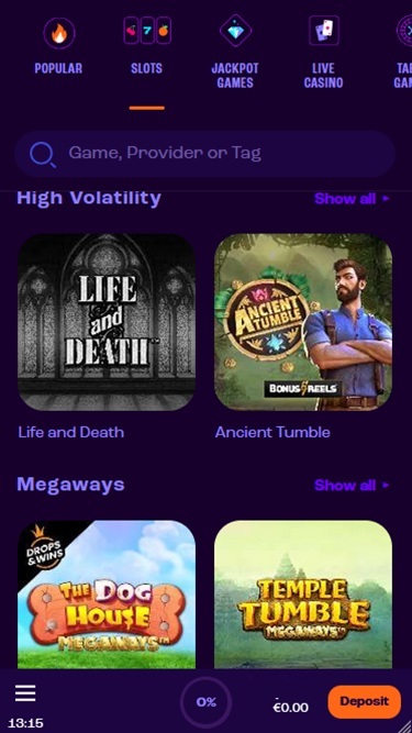 Basically like Wildz or Caxino a good casino, for me the only thing I dont like there is the design more or less, David Haselhoff and that the minimum deposit amount is 20âŹ. Thats different in their sistercasinos. But all in all - good 24/7 support, fast withdrawals, a lot of games and a good bonus system.