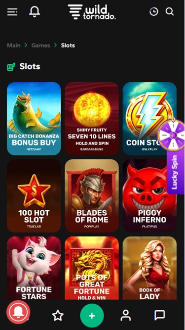 Wild Tornado Casino is powered by Microgaming, Net Entertainment, Playtech, BetSoft, 1x2gaming, Amatic Industries, Big Time Gaming, ELK Studios, Evolution Gaming, EYECON, Ezugi, Habanero Systems, iSoftBet, Play'n GO, playson, Quickspin, Relax Gaming, SOFTSWISS, Thunderkick, Vivo Gaming, Yggdrasil, Endorphina, Wazdan, GameArt, Betgames, Booming Games, Pragmatic Play, Nolimit City, Red Tiger Gaming, Booongo, LuckyStreak, Red Rake Gaming, Skillzzgaming, Fugaso, Belatra Games, Fantasma Games, Kalamba, Revolver Gaming, Platipus Gaming, Nucleus Gaming, Triple Edge Studios, BGAMING, Northern Lights Gaming, Evoplay, IGTech, Switch Studios, Electric Elephant Games, Pocket Games Soft, Bulletproof Games, All41 Studios, Gluck Games, Mascot Gaming, NetGame Entertainment, Gameburger Studios, Pulse 8 Studios, Neon Valley Studios, Golden Rock Studios, Swintt, TrueLab Games, SpinPlay Games, Mancala Gaming, SmartSoft Gaming, KA Gaming, Atmosfera, Blue Guru Games, On Air Entertainment, Holle Games, Buck Stakes Entertainment, Games Global, Reevo, Amusnet Interactive, 2by2 Gaming, CT Interactive, Push Gaming, Tom Horn Gaming, Iron Dog Studio, Foxium, Just For The Win, Reflex Gaming, PearFiction Studios, Wild Streak Gaming, Slingshot Studios, Fortune Factory Studios, RubyPlay, 4ThePlayer, AvatarUX, Gamevy, Crazy Tooth Studio, High 5 Games, ReelPlay, SlotVision, Alchemy Gaming, Rarestone Gaming, Snowborn Games, Boomerang Studios, Hacksaw Gaming, Gold Coin Studios, Bang Bang Games, Gamzix, SilverBack Gaming, Peter And Sons, Charismatic, Onlyplay, Gamebeat, Playgon, Area Vegas, 3 Oaks Gaming, Apparat Gaming, Spribe, Print Studios, 1spin4win, HammerTime Games, BetSolutions, Four Leaf Gaming, INO Games, Nailed It! Games, Neko Games, Reel Kingdom, Oros Gaming, Popiplay and Zillion Games, and the casino’s games are provided through a web-based instant play platform that loads the games directly through your internet browser without any need for downloadable software. The casino also accepts mobile play, which means you can play on your smartphone or tablet.