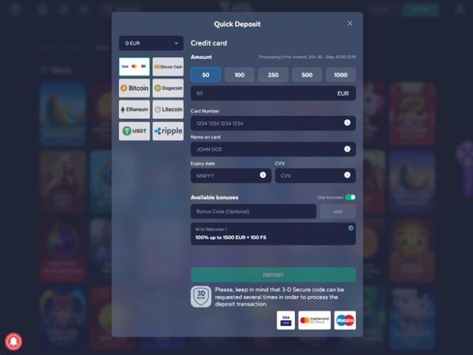 the verification is bizarre. they wanted me to hold my id, a handwritten sign saying "hi wildtornado" and take a selfie all at once. took like 6 attempts because apparently my handwriting wasnt "clear enough" - felt like applying for the cia or something. live games have stupidly low max bets at €75.