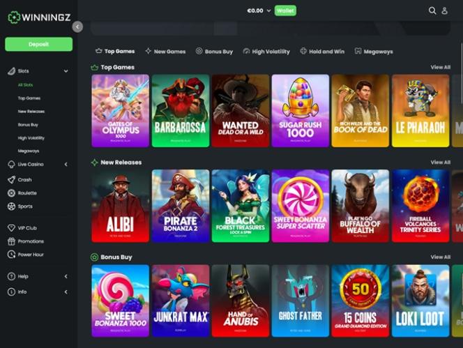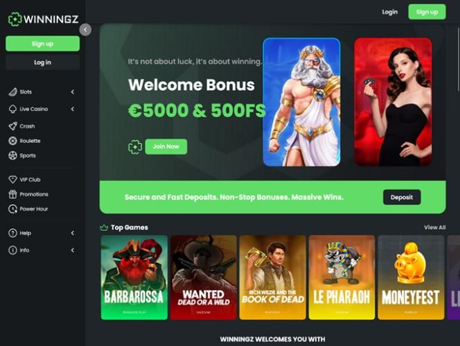 Winningz Casino comes with quite an elegant and minimalistic design where everything seems to be well – organized into several sections so you won’t lose your way around the backdrop.