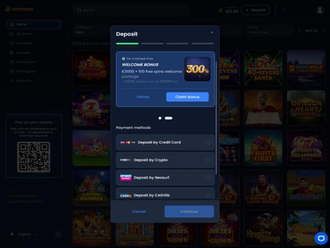 Winthere is a modern gambling site that promises to provide its players with an unforgettable gambling experience by offering an enormous variety of games and activities, including online slots, live dealers, and table games, as well as tons of promotions and bonuses. The brand accepts players from Belgium, France, the United Kingdom, Italy, Spain, Australia, Canada, and the Netherlands to its website and welcomes them to explore everything it has to offer.