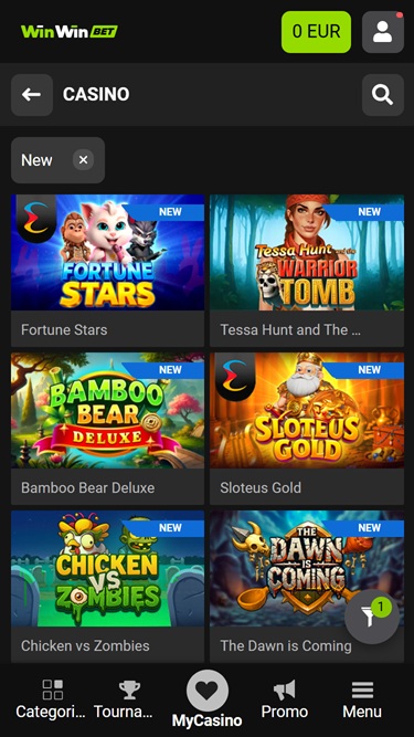 Here, everything is straightforward. The casino platform design will suit gamblers who are not after flashy graphics and details but are more focused on exploring the available games or browsing through available sports events. As usual, we are more focused on the casino and live casino offerings, but it's necessary to mention that WinWin Casino will be a great place for online sports bettors due to its wide selection of popular sports events.