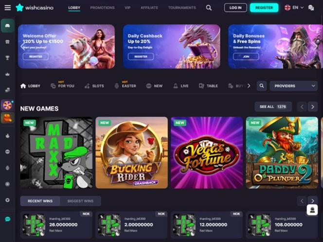 WishCasino hosts a good slot games collection packed with top-notch games suitable for players of all skill levels and game preferences. Players will be able to try out both classic slots and the innovative, fresh slot games with attractive mechanics and reward systems that ensure a lot of fun.