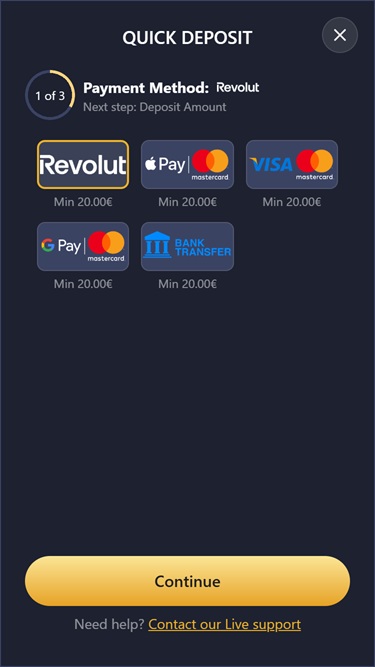 Live casino – Gravity Auto Roulette, Lucky 7, Gravity Blackjack, Speed Baccarat, Sweet Bonanza Candyland, Meg Wheel, Immersive Roulette Deluxe, Pok Deng, 360 Blackjack, 6+ Poker, Bet on Poker, Teen Patti Face Off, Jacks or Better Draw Poker.