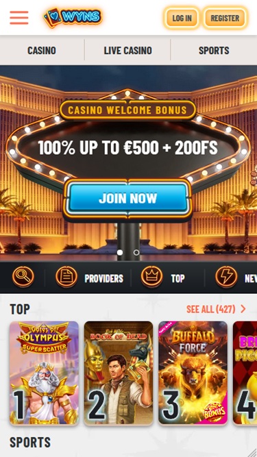 Wyns Casino is an online gaming site which offers a seamless casino and sport betting experience and all of that on a crypto – friendly platform. Players coming here can expect a versatile gaming library and a handful of engaging promos which will entertain them during the week.