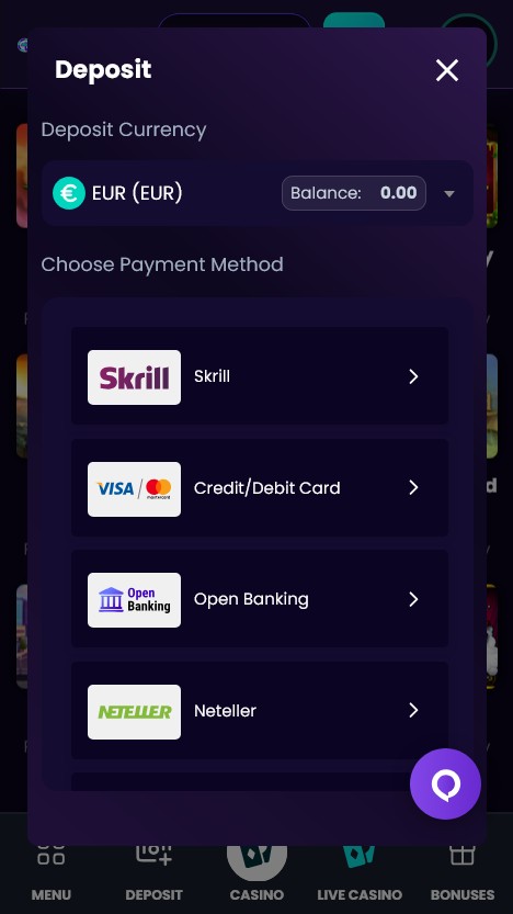 If you prefer sticking to trusted methods like credit and debit cards, you can freely use Visa or Mastercard. Then again, if eWallets are more to your liking, Skrill and Neteller are also available.