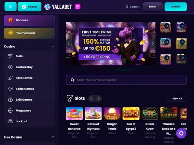 Registered in a new casino YallaBet. Very simple registration form and very simple user interface. There is a welcome bonus and a few more bonuses and promotions. Many different favorite slot providers. There are several types of deposits through a bank card and crypto. The casino left a generally good impression.