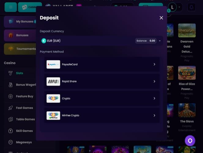 💰 Min Deposit€10 (Credit/Debit Cards/E-Wallets)/€20 (Crypto)