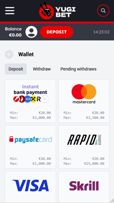 Players who prefer to use cryptocurrencies as their primary banking method will be disappointed to know that there are no such options available. On the other hand, if you’re looking to withdraw and deposit money with popular banking options such as Visa, Mastercard, Neteller, Skrill, Paysafecard, Neosurf, JetonCash, and others will be happy to know that they’ll be able to do so with no problems whatsoever.