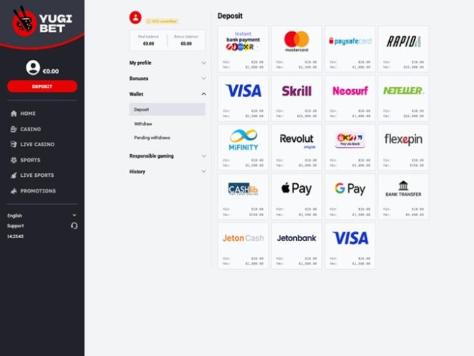 While there isn’t a dedicated loyalty program, Yugibet Casino offers its players a plethora of promotions and bonuses to choose from. Both new and established players will be able to enjoy these promotions, as there are even daily iterations of them. Amongst all the bonuses we’d like to mention the first deposit bonus, the various reload bonuses, sports betting bonuses, free spins bonuses, and cashback.