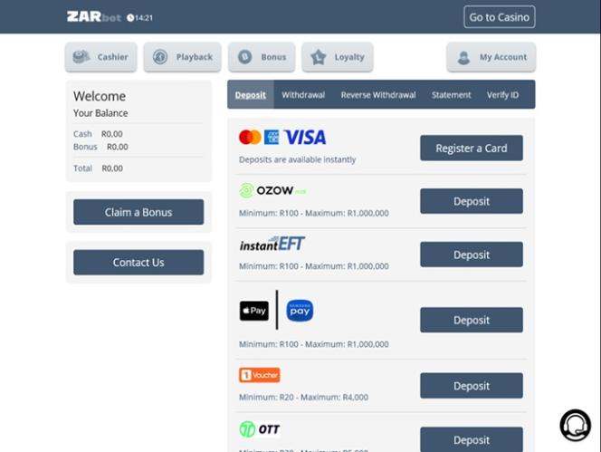 - All cashouts will be made to the same payment option used for making the deposit, and keep in mind that the casino can make payments only to South African banks and bank accounts.