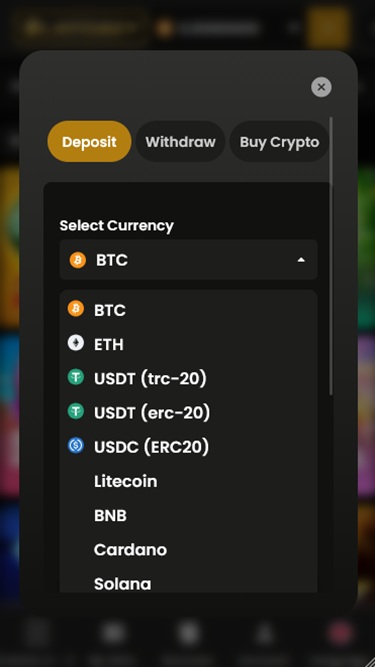 The casino primarily accepts cryptocurrencies as primary payment methods.