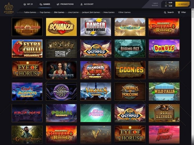 21 Casino is powered by Microgaming, Net Entertainment, 1x2gaming, Barcrest, Big Time Gaming, ELK Studios, Evolution Gaming, EYECON, Ezugi, lightningboxgames, Novomatic, Oryx, Play'n GO, Rabcat, Relax Gaming, Thunderkick, Wazdan, Realistic Games, Booming Games, Stakelogic, Pragmatic Play, Nolimit City, Felt Gaming, Red Tiger Gaming, IGT, Spinomenal, Fantasma Games, SYNOT Games, Kalamba, Revolver Gaming, Skywind, Spinmatic, Triple Edge Studios, BGAMING, Northern Lights Gaming, Stormcraft Studios, Switch Studios, Electric Elephant Games, Pocket Games Soft, All41 Studios, Gameburger Studios, Pulse 8 Studios, Neon Valley Studios, Golden Rock Studios, Spearhead Studios, Swintt, Shuffle Master, SpinPlay Games, GONG Gaming, Blue Guru Games, Lady Luck Games, Buck Stakes Entertainment, Design Works Gaming, Games Global, 2by2 Gaming, Ainsworth, Bally Technologies, Blueprint Gaming, Endemol Games, Greentube, Leander Games, Merkur Gaming, NYX Interactive, Push Gaming, Tom Horn Gaming, WMS, Inspired Gaming, Gaming Realms, SG Interactive, Red7Mobile, CORE Gaming, Scientific Games, Side City Studios, Reel Time Gaming, Authentic Gaming, Iron Dog Studio, Old Skool Studios, Foxium, Betdigital, Just For The Win, Storm Gaming Technology, PearFiction Studios, Apollo Games, Wild Streak Gaming, Slingshot Studios, Fortune Factory Studios, Jade Rabbit Gaming, 4ThePlayer, AvatarUX, Gamevy, Crazy Tooth Studio, NetGaming, High 5 Games, ReelPlay, AGS Interactive, Alchemy Gaming, Plank Gaming, Black Pudding Games, Snowborn Games, Hacksaw Gaming, Max Win Gaming, Gold Coin Studios, Half Pixel Studios, SilverBack Gaming, Peter And Sons, Aurum Signature Studios, Armadillo Studios, Lucksome Gaming, Area Vegas, RAW iGaming, Leap Gaming, Wishbone Games, Spribe, Print Studios, Gaming Corps, HammerTime Games, Four Leaf Gaming, INO Games, Nailed It! Games, Live 5, Neko Games and Light & Wonder, and the casino's games are provided through a web-based instant play platform as well as through a mobile site, which allows for play via smartphones and tablets.