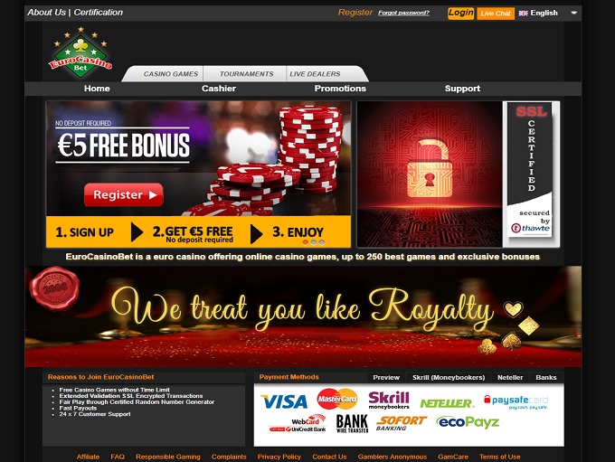 EuroCasinoBet is an online betting site that was established in 2008 by EuroCasinoBet Ltd. The casino focuses primarily on the European betting market, offering up dozens of games from regulated software developers. The site has been well-received by its customers in the past, as the casino offers many bonuses and has a solid management team that processes payouts consistently.