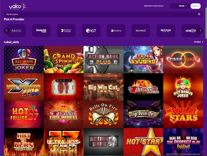YakoCasino is powered by Microgaming, Net Entertainment, Amatic Industries, Barcrest, Big Time Gaming, ELK Studios, Evolution Gaming, Novomatic, Relax Gaming, Thunderkick, Stakelogic, Pragmatic Play, Red Tiger Gaming, IGT, Shuffle Master, SpinPlay Games, GONG Gaming, Games Global, Bally Technologies, Blueprint Gaming, Merkur Gaming, NextGen, WMS, SG Interactive, Scientific Games, Reel Time Gaming, Iron Dog Studio, Just For The Win, Slingshot Studios, High 5 Games, Eurostar Studios, Aurum Signature Studios and Lucksome Gaming, and its casino games are provided through a browser platform that allows you access through an internet browser.
