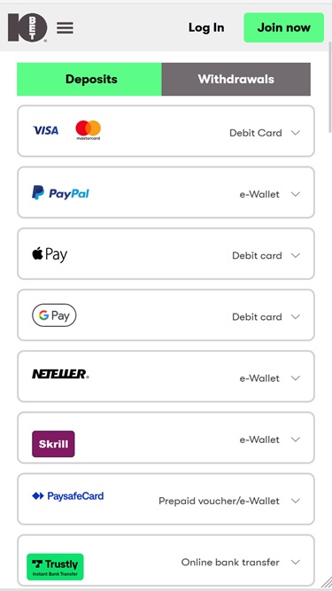 Besides looking into licensing, we also recommend that you carefully consider which payment methods are available at the sports betting site you are interested in. 10bet offers its players a wide range of banking options for deposits and withdrawals, including credit cards, electronic wallets, bank transfers, prepaid cards, and cryptocurrencies.