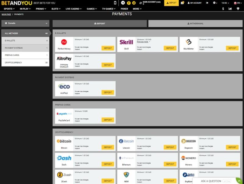 When looking for the perfect sports betting site, you must look into which banking options are available. Luckily, Betandyou features an extensive list of payment methods you can use to deposit and withdraw your funds, and it includes numerous credit cards, debit cards, electronic wallets, and even modern crypto options.
