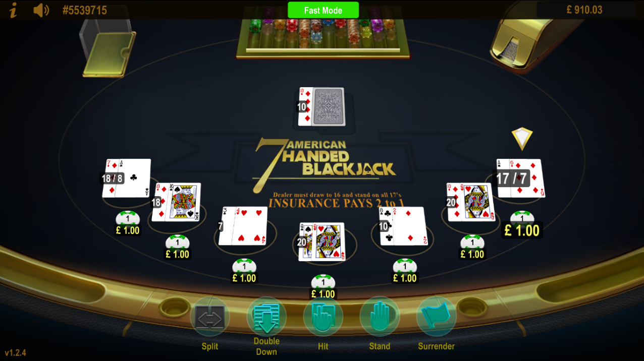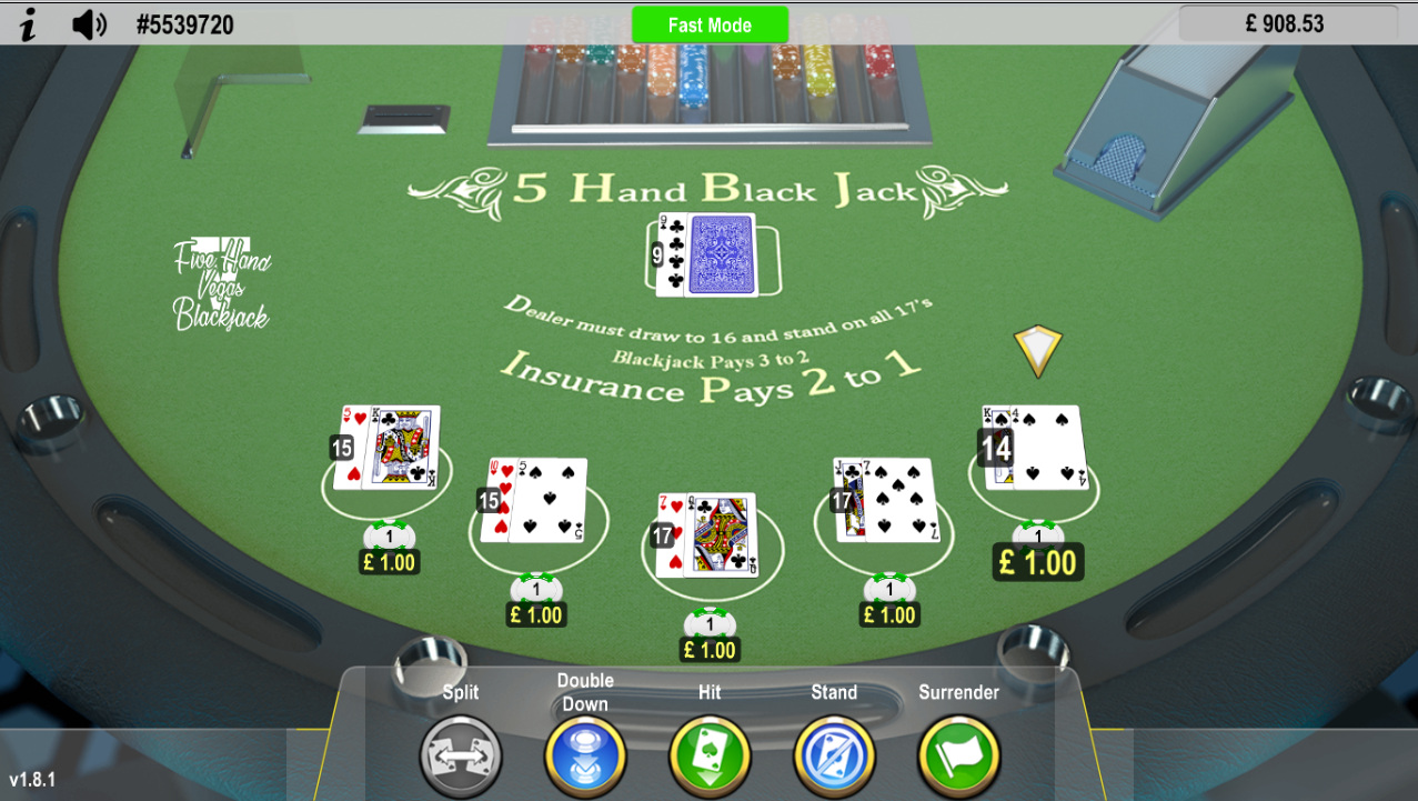 Number of decks. All games use six, except the single-hand game uses three. That's right three -- I've never seen that before.