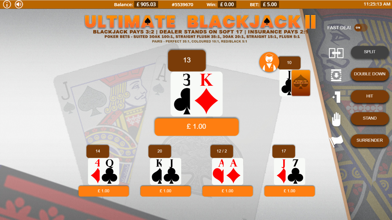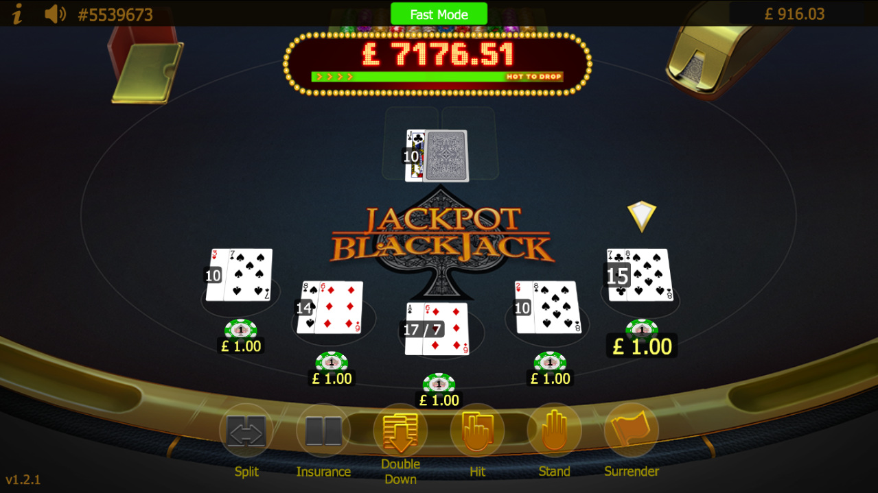 A few of unique things to their games are the one three-deck game, the 10-card Charlie rule, and the random jackpot in the Jackpot Blackjack game. I doubt anybody has ever seen ten cards in the same initial hand of blackjack in the entire history of the world. Have a heart and make it something remotely possible, like a seven-card Charlie rule. As to the Jackpot Blackjack game, I don't know the value of that. The rules say it can hit only at $5,000 or more, it's more likely to be hit with a larger bet, and the chances of hitting are somehow related to a color bar on the screen.
